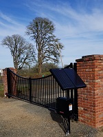 | A solar powered gate installation may be ideal for remote locations; where power is unavailable or otherwise difficult to provide. Typical system components include: