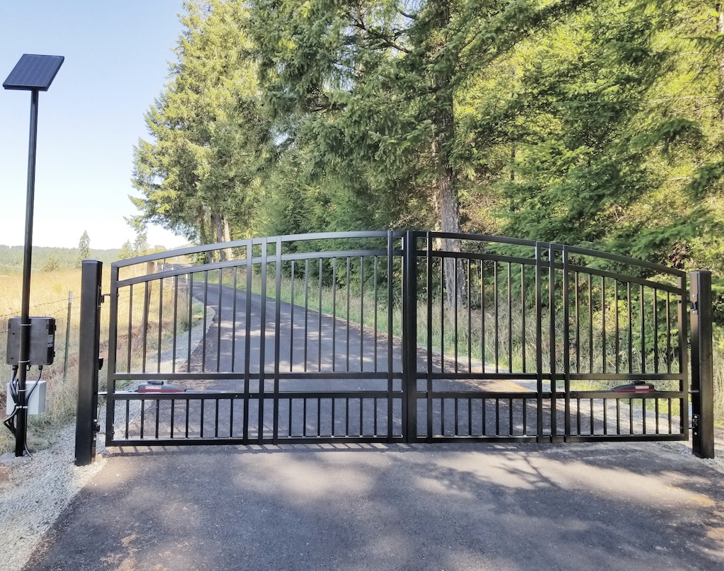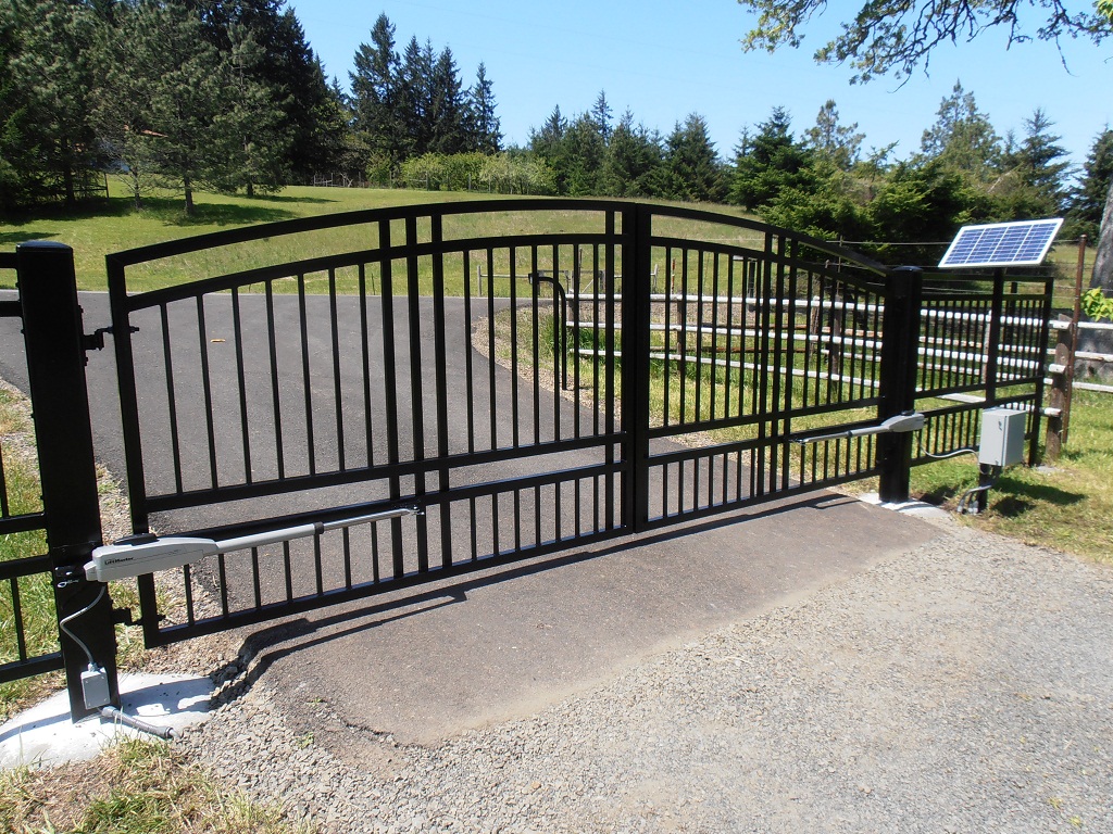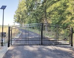- Gate & steel posts - Solar panels or array - Control box - Deep cycle, marine-type batteries - Keypad, remote control, intercom, or other methods of secure entry - Exit sensors Operating a solar powered gate typically requires reliable, year-round access to sunlight; direct, southern exposure is ideal. For additional information on solar powered gate installations and system requirements or to arrange a site assessment, please contact us. |